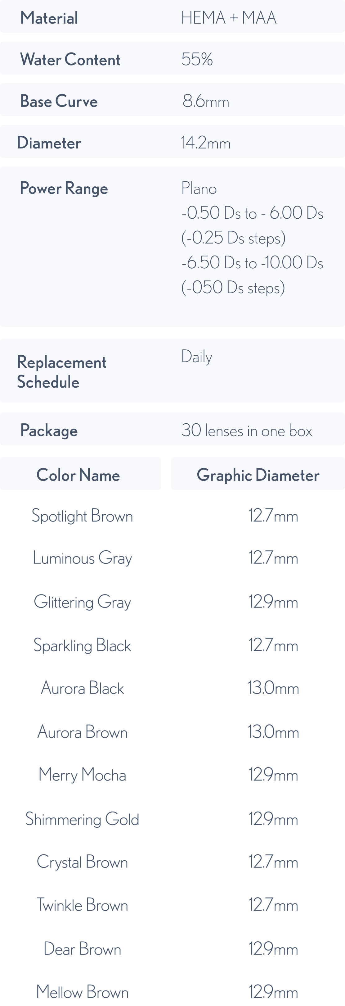 LACELLE's intricate circular lens design enhances the iris naturally. So your eyes look wider, larger and full of confidence.